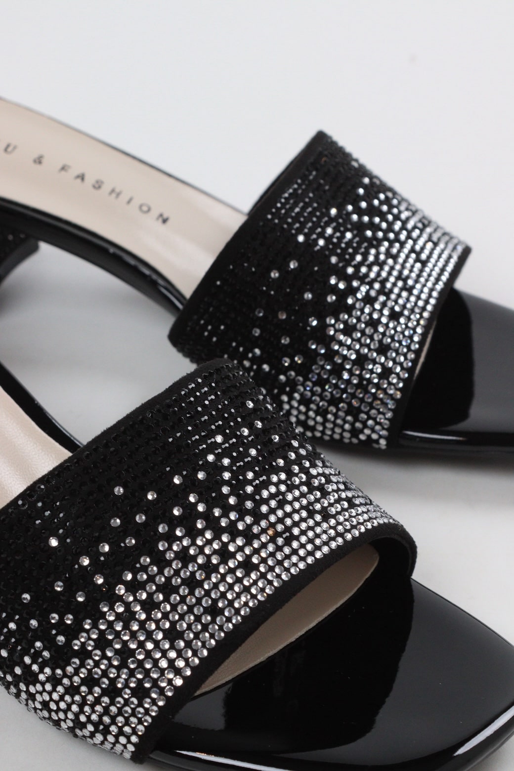 Aimeigao - Women's Diamond Embellished Block Heels - Black