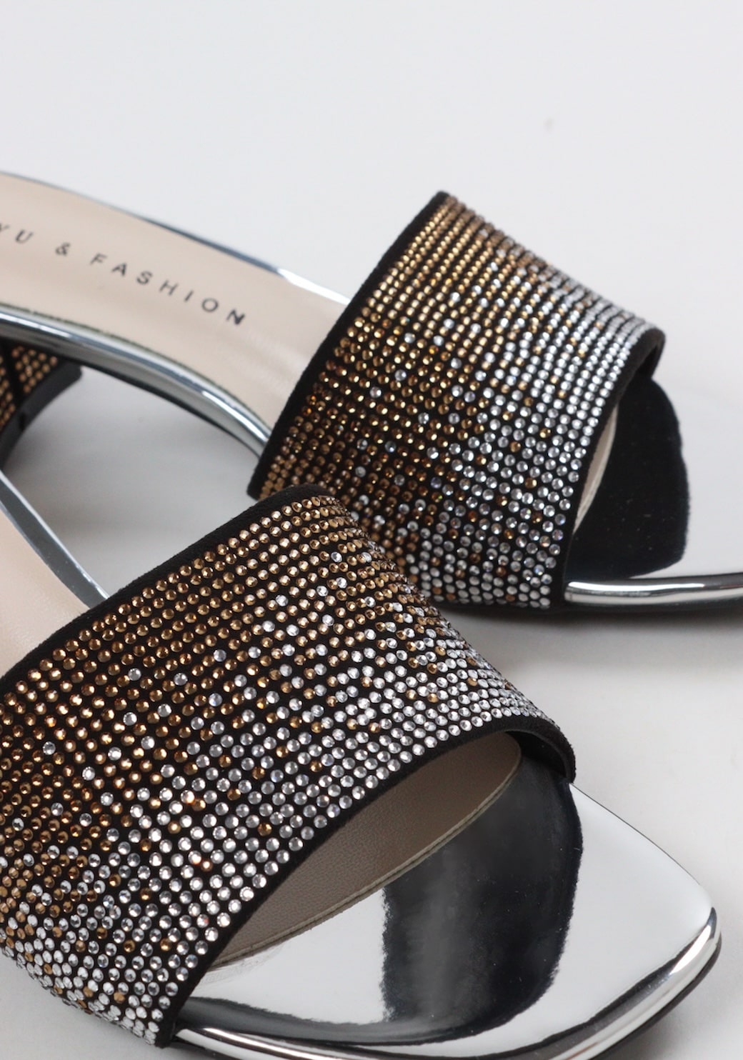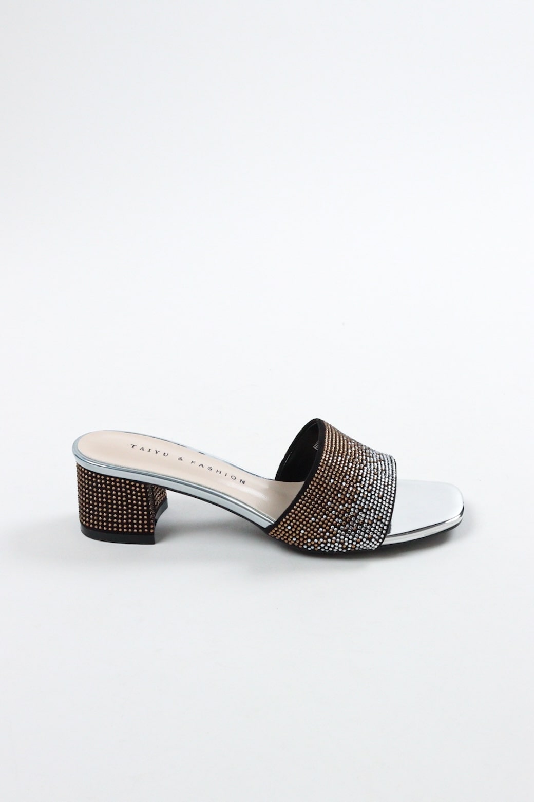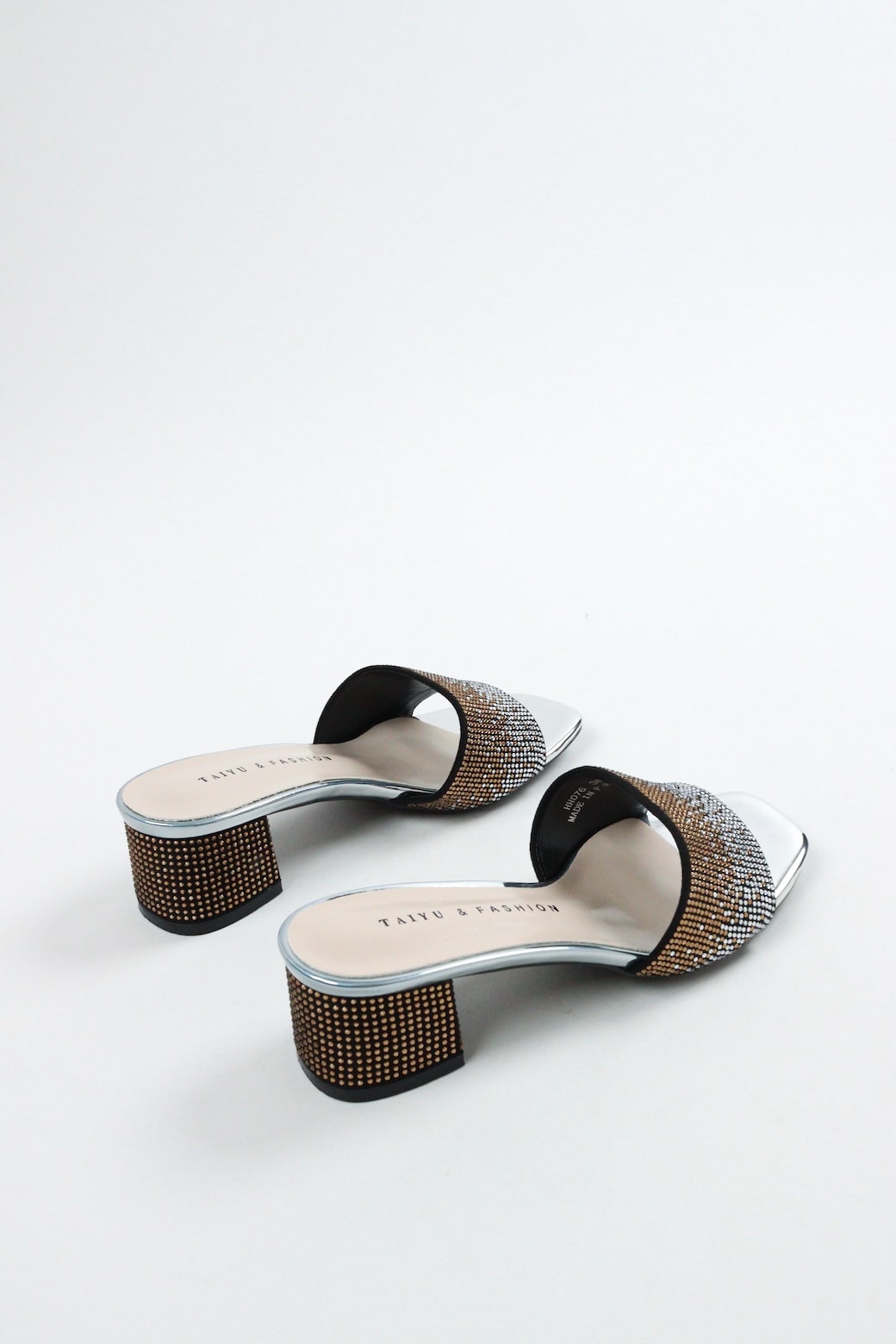 Aimeigao - Women's Diamond Embellished Block Heels - Silver