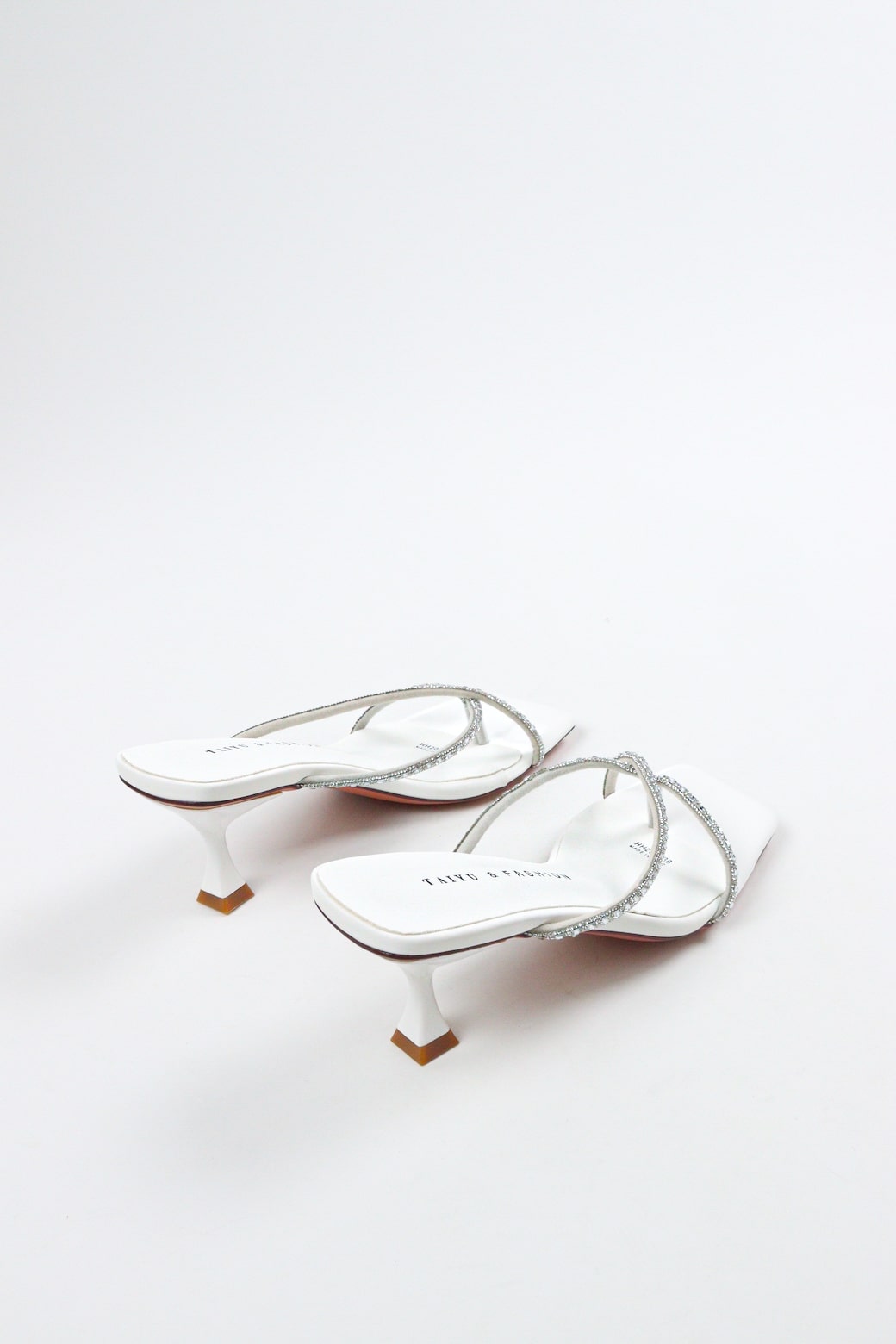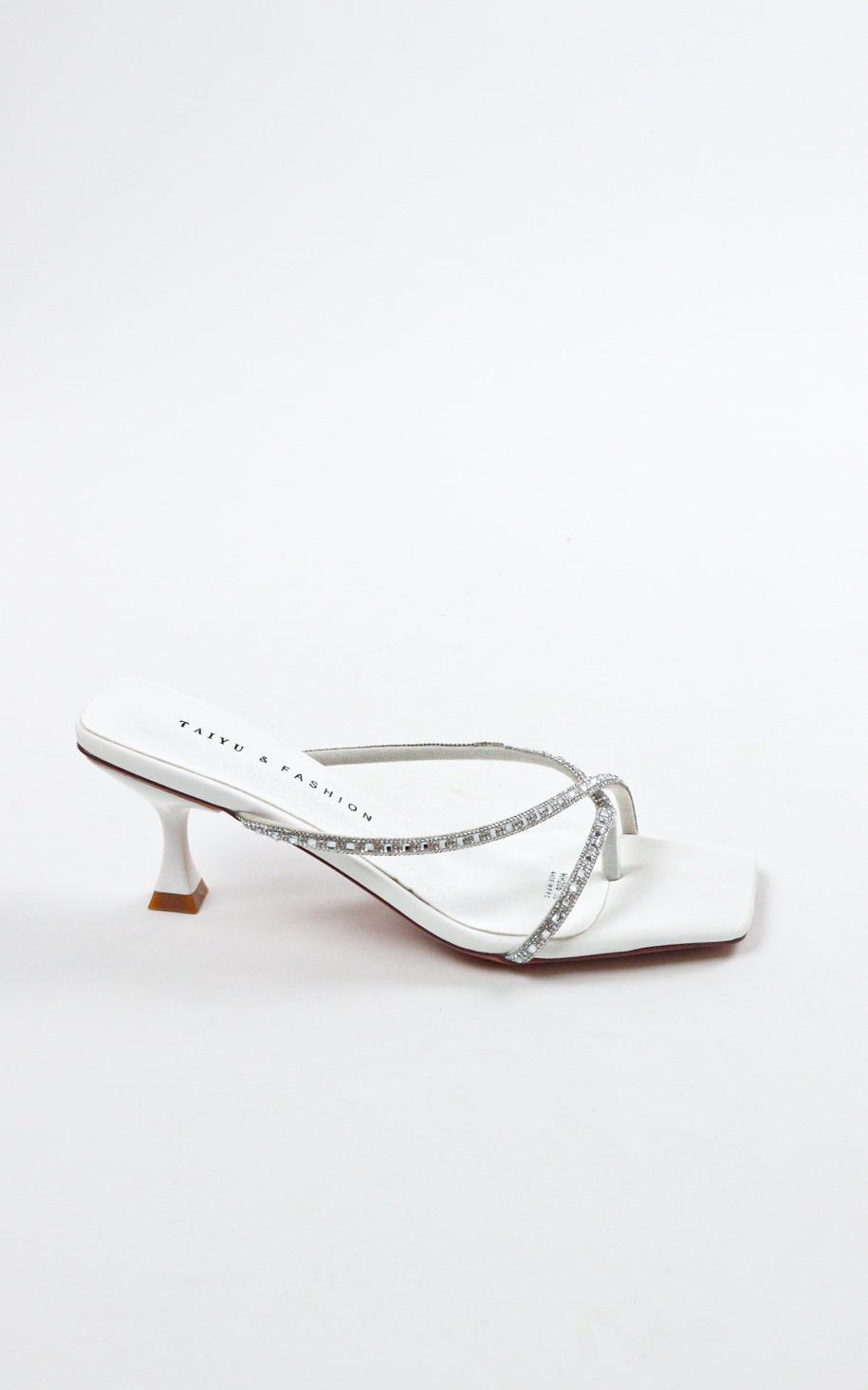 Taiyu - Women's Diamond Embellished Kitten Mules - White
