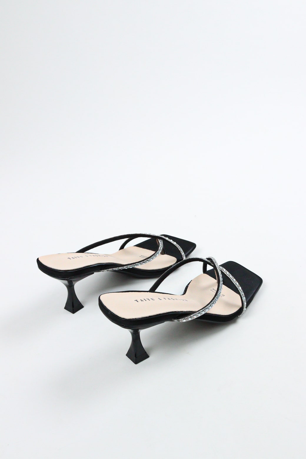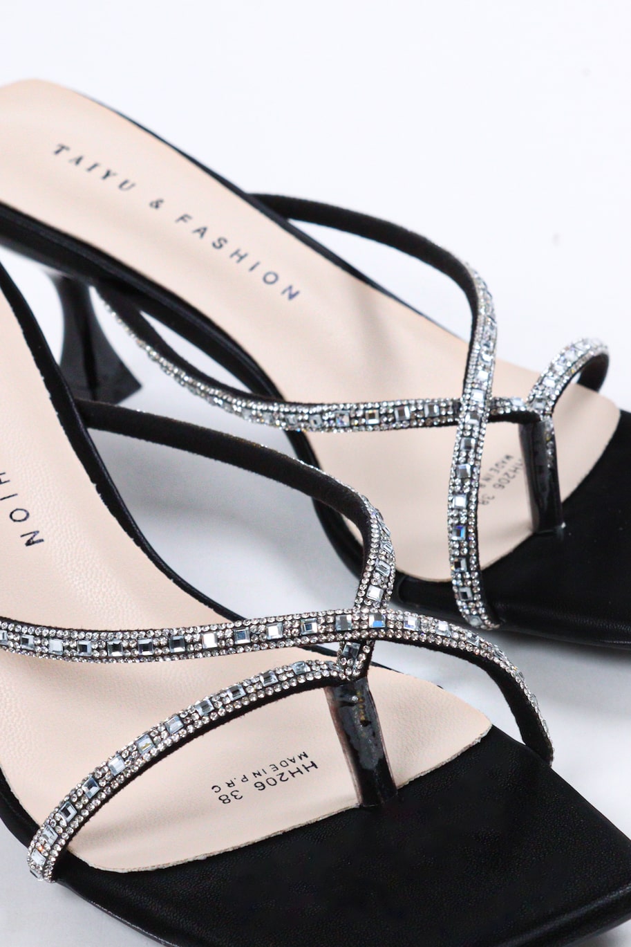 Taiyu - Women's Diamond Embellished Kitten Mules - Black