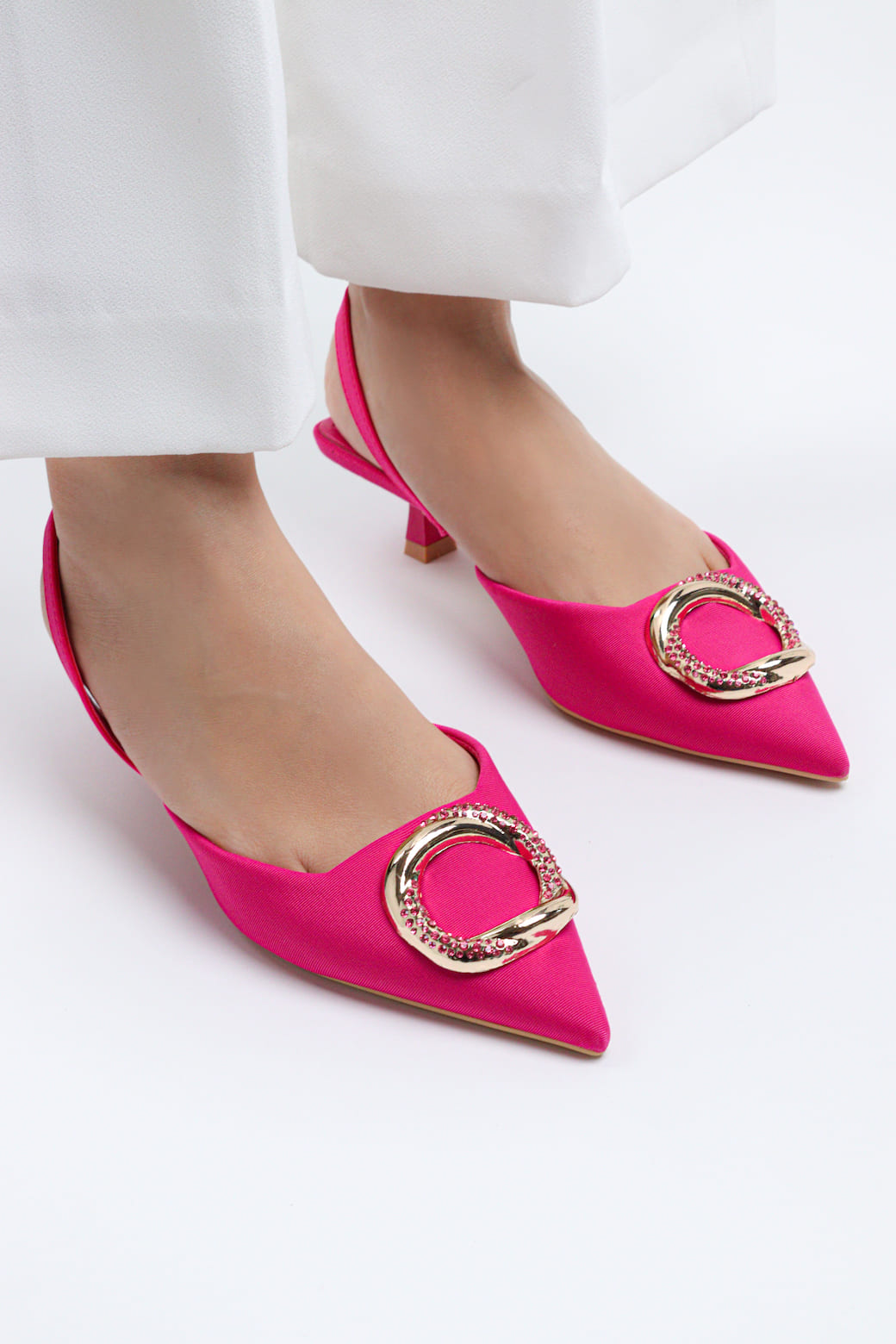 - جزء علوي من قماش الكانفاس بإبزيم مطلي بالذهب